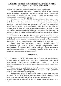 Памятка " Ложное сообщение об акте терроризма -уголовно наказуемое деяние" 07.10.2025