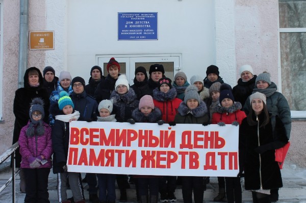 17 ноября 2019 года - Всемирный день памяти жертв ДТП. День, посвященный этой теме, призван привлечь внимание к печальному факту: во всем мире в результате дорожно-транспортных происшествий ежедневно погибает 3 тысячи человек и около 100 тысяч получают серьезные травмы. Большая часть из погибших и пострадавших - молодежь. В Доме детства и юношества проведён ряд мероприятий, посвящённых к этому дню: акция под девизом «Помни, чтобы жить!», в которой участвовали студенты Болотнинского педагогического колледжа, районный родительский комитет, сотрудники ОГИБДД, учащиеся и педагоги ДДЮ. Родительский патруль проводил разъяснительную беседу, раздавал листовки пешеходам и водителям для привлечения внимания к проблеме обеспечения дорожной безопасности и соблюдения правил дорожного движения.