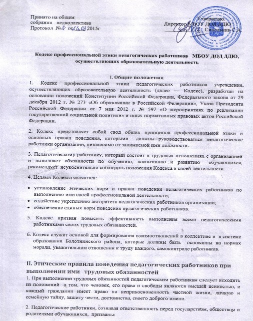 Кодекс профессиональной этики педагогических работников МБОУ ДОД ДДЮ, осуществляющих образовательную деятельность
