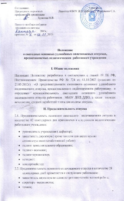 ПОЛОЖЕНИЕ о ежегодных отпусках